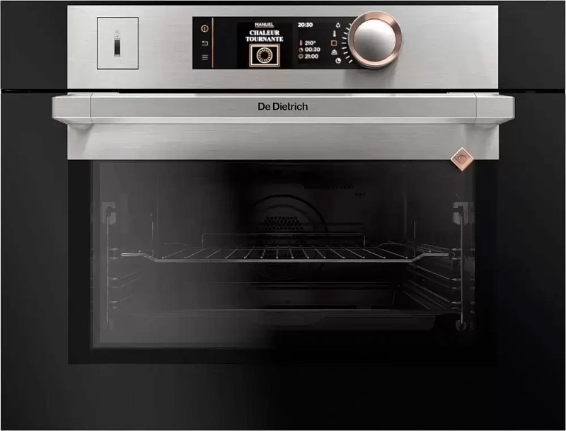 De Dietrich DKR7580X — это компактная встраиваемая духовка с функцией приготовления на пару. В арсенале модели — 11 различных режимов работы, включая циркуляцию горячего воздуха, гриль и функцию поддержания тепла приготовленной пищи. Для удобной очистки внутренней камеры предусмотрены две программы пиролитической очистки.