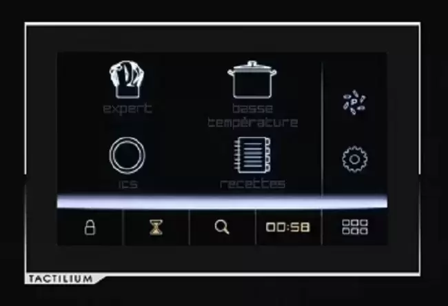 Представляем новую духовку De Dietrich, оснащённую современным сенсорным дисплеем «Tactilium». Благодаря крупному экрану с чёткой графикой управление прибором становится максимально простым и понятным. При необходимости на дисплее автоматически появляется напоминание о необходимости очистки внутренней камеры с помощью пиролиза.