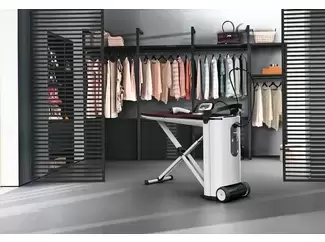 FashionMaster от Miele — это практичное решение для глажки, объединяющее гладильную доску, утюг и парогенератор в одном устройстве. С ним легче и быстрее приводить вещи в порядок, а сам процесс становится приятнее. Система легко складывается всего за пару движений — удобно хранить и быстро разложить, когда нужно. Утюг оснащён особой сотовой подошвой, которая деликатно распределяет пар по ткани, не повреждая её. В набор также включён отпариватель — он аккуратно справляется с деликатными вещами вроде костюмов или штор.