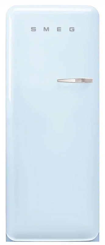 Холодильник Smeg FAB28LPB6 — гармоничное сочетание дизайна и практичности в нежно-голубом цвете, который легко впишется в любую кухонную обстановку. Благодаря размерам 153×60.1×72.8 см его удобно разместить как в нише, так и рядом с другой мебелью. С учётом выступающей ручки глубина составляет 78.8 см — такой запас улучшает удобство при открывании. Модель оснащена одной дверцей с левосторонним открыванием и наружной ручкой, что делает использование абсолютно понятным, а стильный ретро-дизайн добавляет пространству индивидуальности без излишней вычурности.