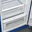 Холодильник Smeg FAB28RBE6 удачно сочетает в себе эстетику 50-х годов и современные технологии, при этом добавляя насыщенный синий акцент в интерьер. Его закруглённые формы, выразительная ручка и элементы с хромовым покрытием создают образ ретро-мебели, которая органично смотрится и в современных кухнях. Благодаря компактным размерам — 153×60.1×72.8 см — модель легко разместить как в нише, так и рядом с рабочим пространством. При этом глубина с учётом ручки составляет 78.8 см — важно учитывать это при установке.