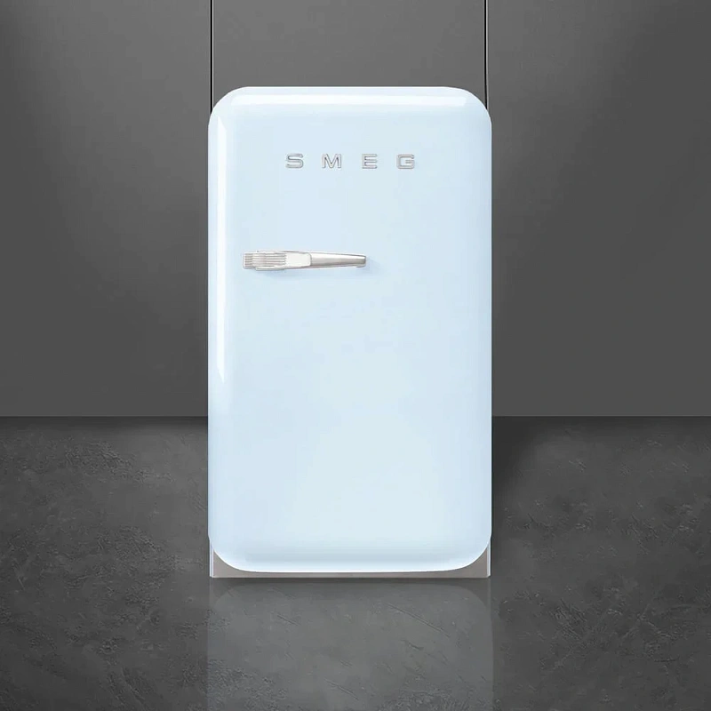 Мини-холодильник Smeg FAB5RPB6 выполнен в нежно-голубом пастельном оттенке и сразу же обращает на себя внимание своим ретро-дизайном с современными элементами отделки. Внешняя ручка подчёркивает стиль и делает открытие дверцы ещё удобнее. Благодаря компактным размерам — 74×40,4×50 см — этот мини-бар аккуратно вписывается в любой интерьер, а с учётом ручки глубина составляет 53,4 см, что важно при установке. Такая модель будет отлично смотреться на кухне, в рабочем кабинете или гостиной, не занимая много места и не перегружая пространство.