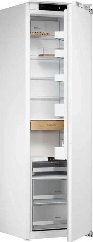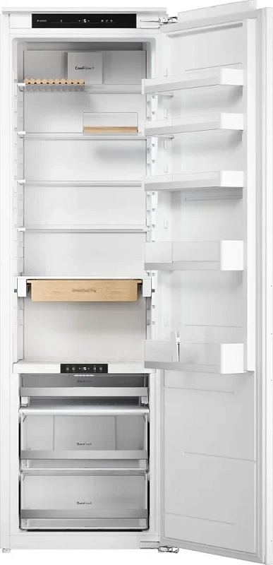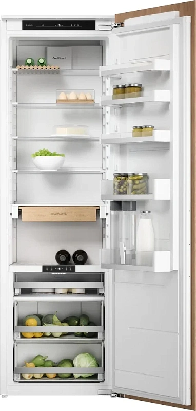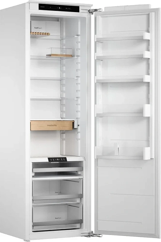 Эта модель идет без морозильной камеры и представляет собой представителей линейки Exclusive. У неё сравнительно компактный корпус: высота — 177 см, ширина — 54 см. Двери монтируются по системе door-on-door, что придаёт конструкции дополнительную устойчивость. Петли оснащены механизмом доводчика, благодаря чему дверца закрывается мягко и плавно. Внутренняя система охлаждения CoolFlow+ работает совместно с ионизатором IonAir — такая комбинация обеспечивает равномерное распределение холода и уменьшает воздействие вредных бактерий. Функция AdapTech анализирует поведение пользователя: с помощью датчиков устройство собирает данные о режиме эксплуатации и подстраивается под него.