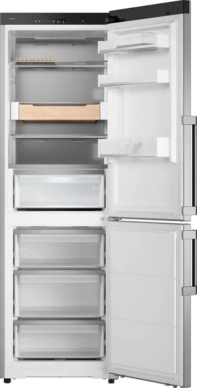 Управление осуществляется через сенсорную панель с TFT-дисплеем, поддерживается обратная тактильная связь и подключение к приложению ConnectLife. Температуру можно настраивать отдельно для трёх зон, есть интеллектуальный контроль климата и специальные режимы: Шаббат, Вечеринка, Ночной, Очистка. Если дверь остаётся открытой — прозвучит сигнал, а при повышении температуры включаются световые и звуковые оповещения.