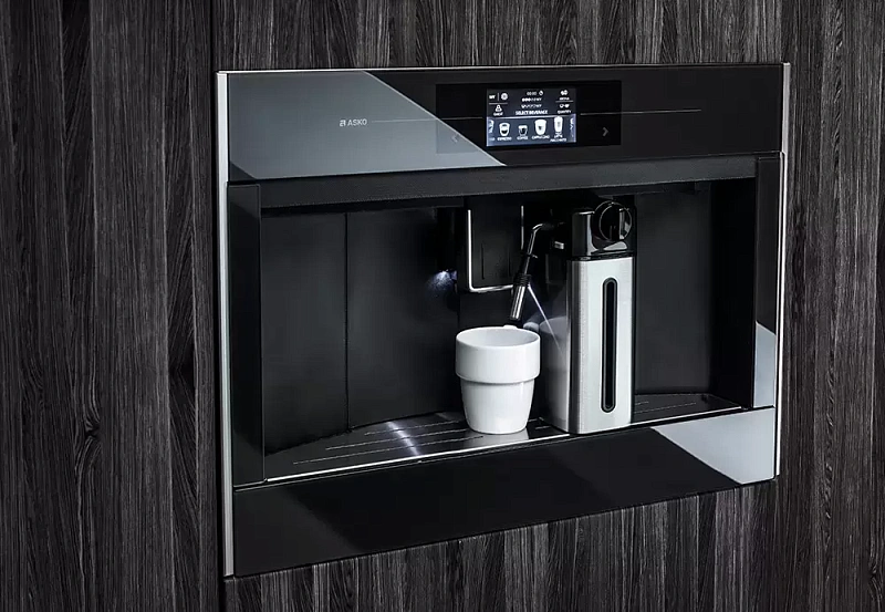 Автоматическая кофемашина Asko в стиле Craft. Устройство снабжено металлической рамкой, которая обеспечивает бесшовную установку, а цифровой дисплей на передней панели органично вписывается в корпус антрацитового цвета. Прибор может использовать как зерновой, так и молотый кофе.