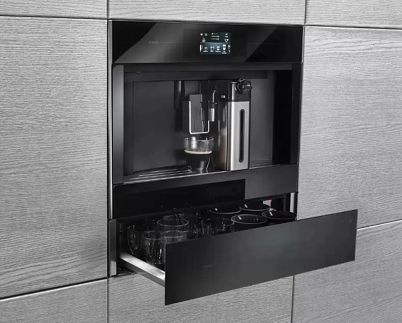 Модель с элегантным фасадом из черного стекла удобно размещается как в подвесном шкафу, так и в кухонной колонне. Работает как с зерновым, так и с молотым кофе. Можно готовить сразу две чашки напитка. Машина оснащена программами для приготовления 13 различных видов кофе, включая варианты с добавлением молока и пенки: эспрессо, двойной эспрессо, капучино, латте, латте макиато, лунго и другие.
