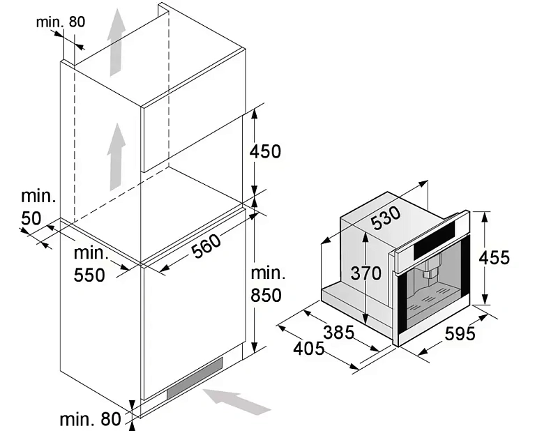 - • Размеры ниши для встраивания (ВxШxГ), см: 56х45х55