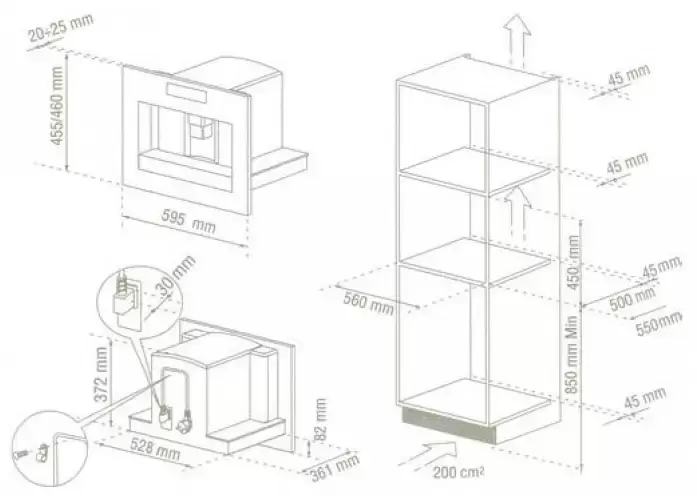 - • Размеры ниши для встраивания (ВxШxГ), см: 56х45х55