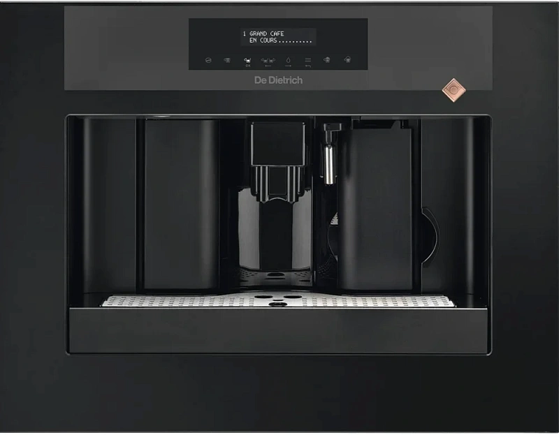 Встраиваемая кофемашина De Dietrich DKD7400XB — это пример того, как французская утончённость сочетается с высоким уровнем технической проработки. Она отлично вписывается в кухонный гарнитур, не нарушая общего стиля: корпус выполнен в глянцевом чёрном цвете и отличается аккуратной отделкой. Устройство оснащено встроенной кофемолкой с керамическими жерновами и возможностью тонкой настройки помола, благодаря чему можно подобрать нужную консистенцию для разных напитков — от крепкого ристретто до лёгкого лунго.