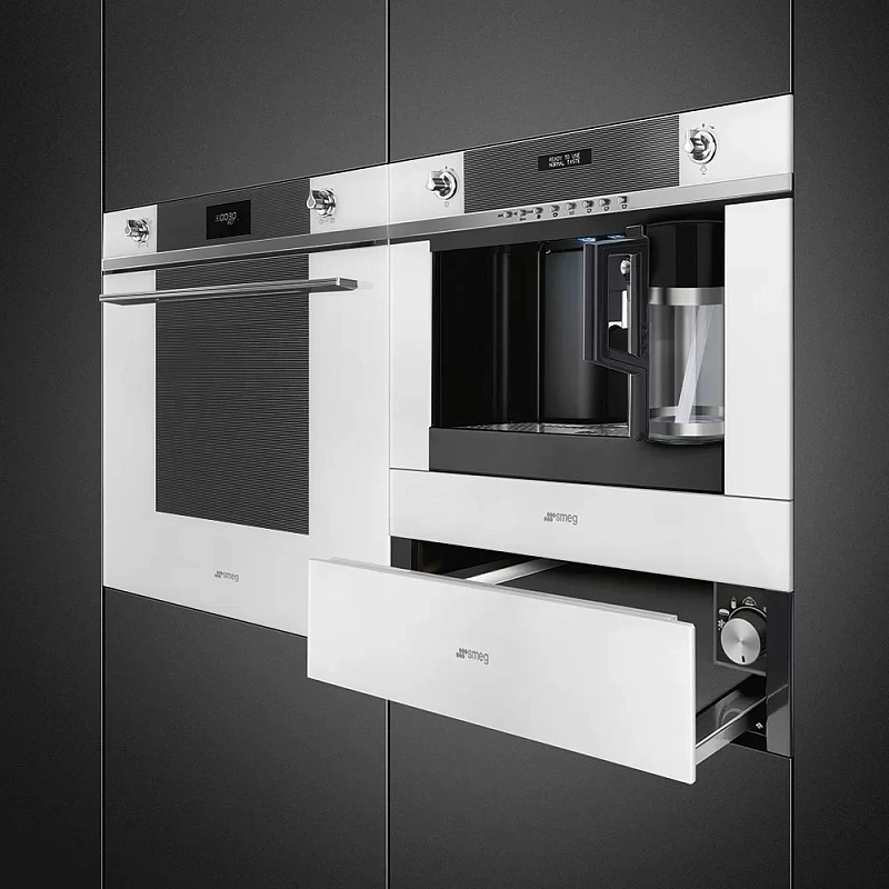 Smeg CMS4101B — это встраиваемая автоматическая кофемашина. Устройство оснащено многоязычным LCD-экраном и удобными поворотными переключателями с подсветкой. Наличие режима энергосбережения и функции удаления накипи делает использование ещё практичнее.