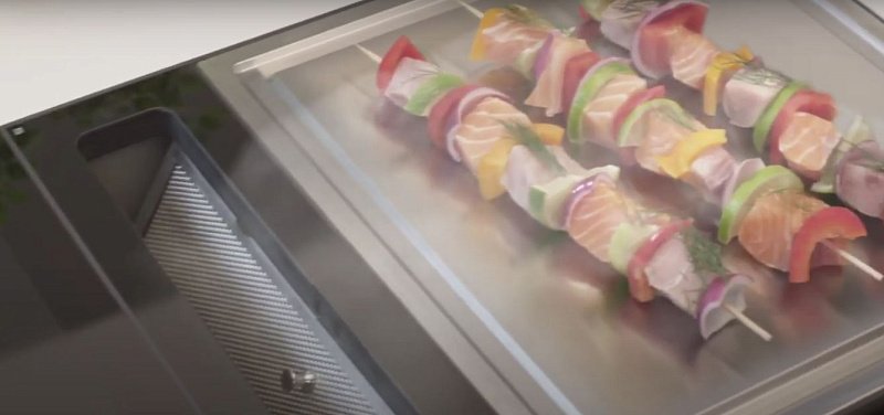 Индукционная плита теппан-яки Miele из линейки SmartLine — отличное решение для тех, кто предпочитает этот способ готовки. Управление температурой осуществляется с помощью сенсорной панели Smart Select с цифровыми уровнями. Варочная поверхность выполнена из стеклокерамики — она устойчива к загрязнениям и легко очищается. При помощи сенсоров можно выбрать один из 9 уровней нагрева, а функция восстановления параметров позволяет вернуть настройки в случае случайного отключения. Устройство оснащено двумя отдельными зонами нагрева, которые регулируются по отдельности. Возможна установка как заподлицо со столешницей, так и поверх неё. Также предусмотрены индивидуальные настройки, включая регулировку громкости звуковых сигналов.
