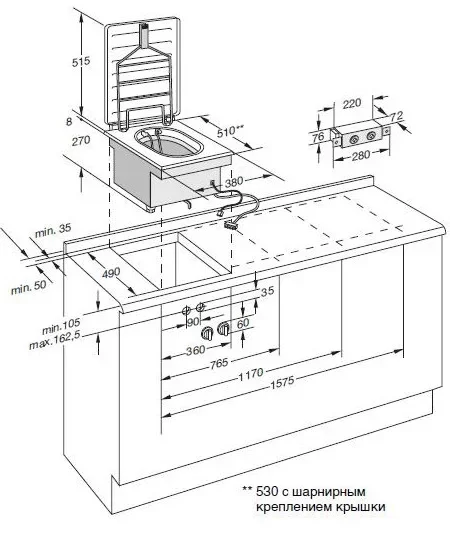 - • Размеры ниши для встраивания (Ш х Г), см: 36x49