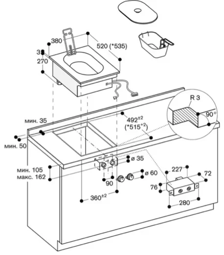 Фритюрница Gaggenau VF 414-110 представляет собой отдельную встраиваемую модель, которая не требует подключения к другим устройствам бренда, поэтому установить её можно в любом удобном для вас месте на кухне. Устройство работает от обычной электросети, что делает его подходящим для большинства квартир. Управление осуществляется с помощью поворотных регуляторов — разобраться с настройками температуры и режимами будет просто каждому члену семьи.