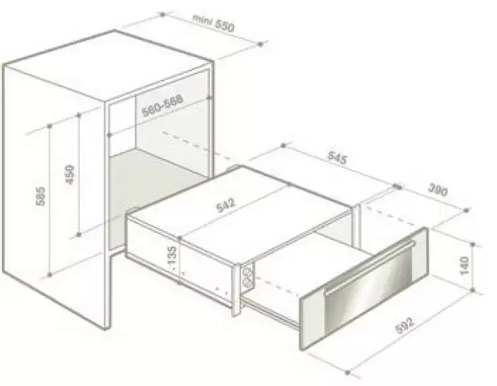 - • Размеры ниши для встраивания (ВxШxГ), см: 13.5 х 56-56.8 х 55