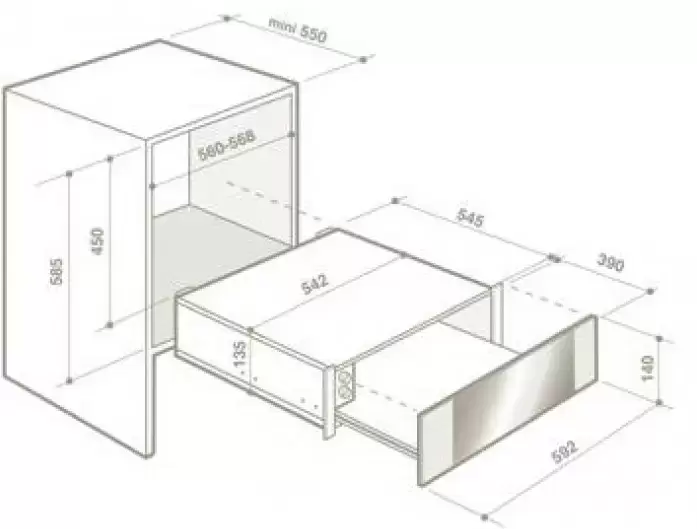 - • Размеры ниши для встраивания (ВxШxГ), см: 13.5 х 56-56.8 х 55