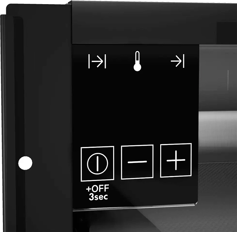 Открывается дверца лёгким нажатием на определённую зону на передней панели — благодаря этому модель органично смотрится даже в интерьерах с минималистичным бесшовным дизайном.