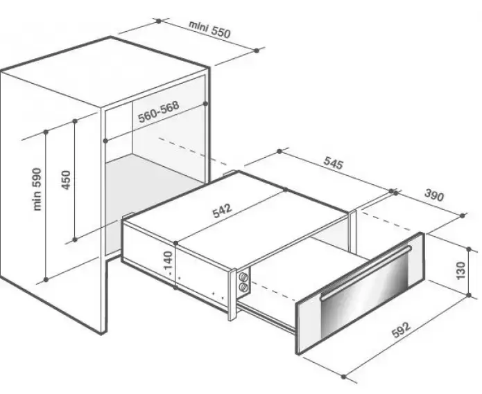 De Dietrich DWD7400G легко устанавливается в стандартную нишу шириной 60 см. Его высота составляет 13 см, а объём — целых 24 литра. Это позволяет разместить одновременно до 20 крупных тарелок, около 30 суповых чаш или примерно 80 кофейных. Максимальный допустимый вес загрузки — 20 кг. Устройство изготовлено из надёжных материалов и оснащено современной электроникой, что гарантирует долгую службу. Система вентиляции равномерно распределяет тепло по всей камере.