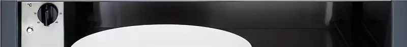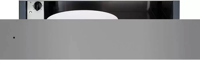 Подогреватель предлагает несколько температурных режимов — от 30°C до 70°C, чтобы можно было оптимально прогреть различные типы посуды: фарфор, стекло или керамику. Управление производится с помощью удобного поворотного регулятора, расположенного слева внутри ящика.