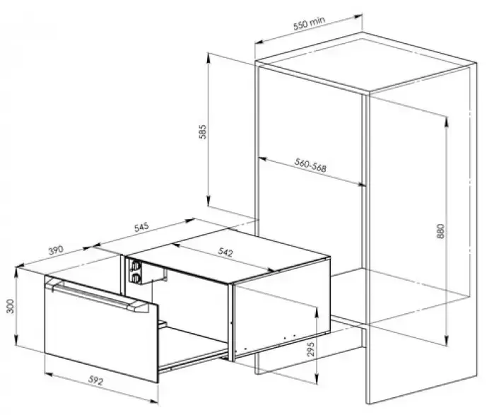 - • Размеры ниши для встраивания (ВxШxГ), см: 29.5 х 56-56.8 х 55