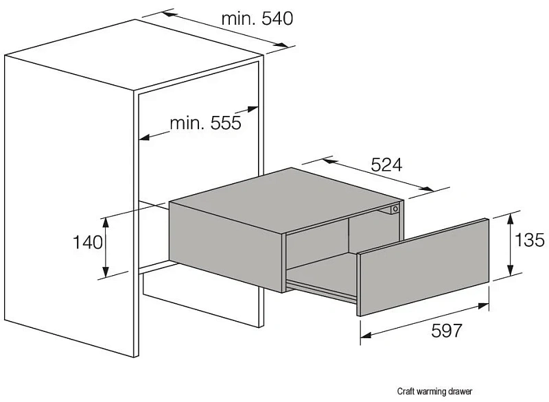 - • Размеры ниши для встраивания (ВxШxГ), см: 14.1х56х55