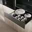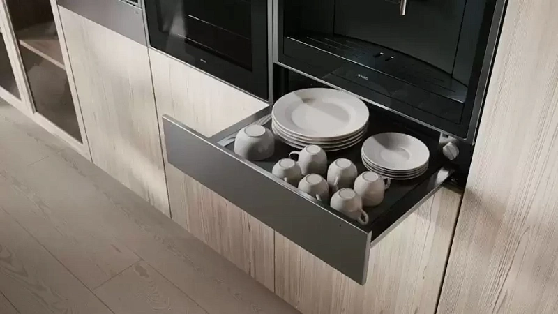 Устройство вмещает до 20 тарелок (диаметр по 28 см), 80 кофейных и 40 чайных чашек — этого вполне достаточно как для большой семьи, так и для встреч с гостями. Благодаря полностью выдвигающемуся ящику пользоваться подогревателем удобно, а механизм доводчика с амортизатором позволяет дверце закрываться мягко и бесшумно, продлевая срок службы прибора.