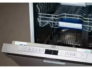 Управление у машины сенсорное и полностью электронное. Панель управления скрыта и активируется только при необходимости, поддерживая аккуратный внешний вид техники. На дисплее отображаются текущий этап работы, оставшееся время и доступные опции — всё под контролем. Сенсор реагирует чётко, управление интуитивное. Также есть таймер отложенного запуска (до 24 часов), позволяющий запланировать запуск мойки на ночь, когда электроэнергия дешевле.