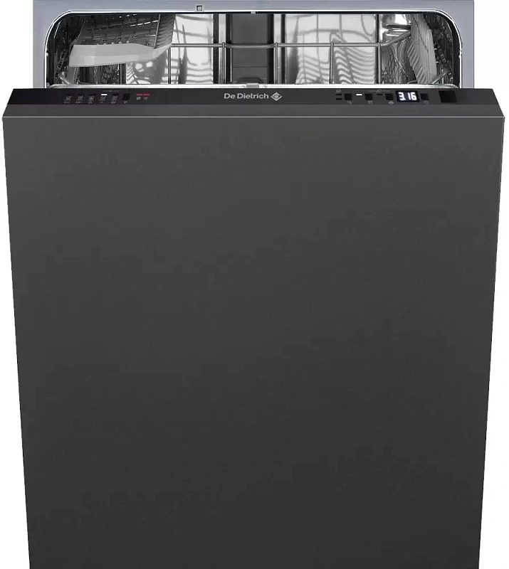Встраиваемая посудомоечная машина De Dietrich легко впишется в любой стиль кухни — главное, правильно подобрать место установки и обеспечить доступ к коммуникациям. Устанавливается она полностью в нишу и закрывается декоративной передней панелью. Обратите внимание: фасад не входит в комплект, его нужно устанавливать самостоятельно. Модель имеет немного уменьшенную ширину, благодаря чему легко найдёт место даже на компактной кухне. Камера рассчитана на 10 комплектов посуды — это стандарт для одного человека и включает: глубокую и плоскую тарелки, тарелку для салата, чашку с блюдцем, ложку и вилку.
