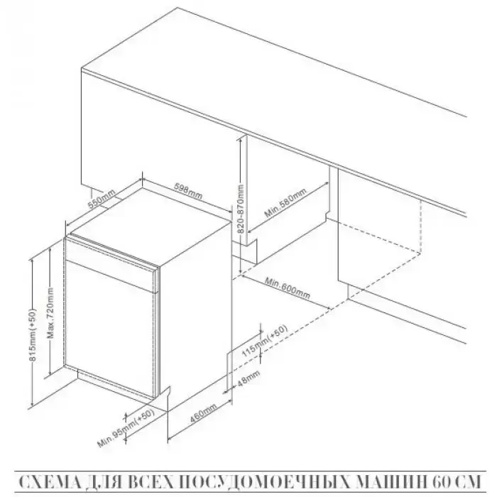 - • Размеры ниши для встраивания (ВxШxГ), см: 82-87х60х58