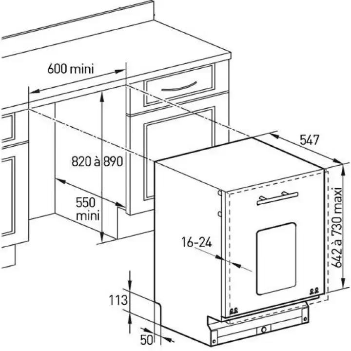 - • Размеры ниши для встраивания (ВxШxГ), см: 82-89 х 60 х 55