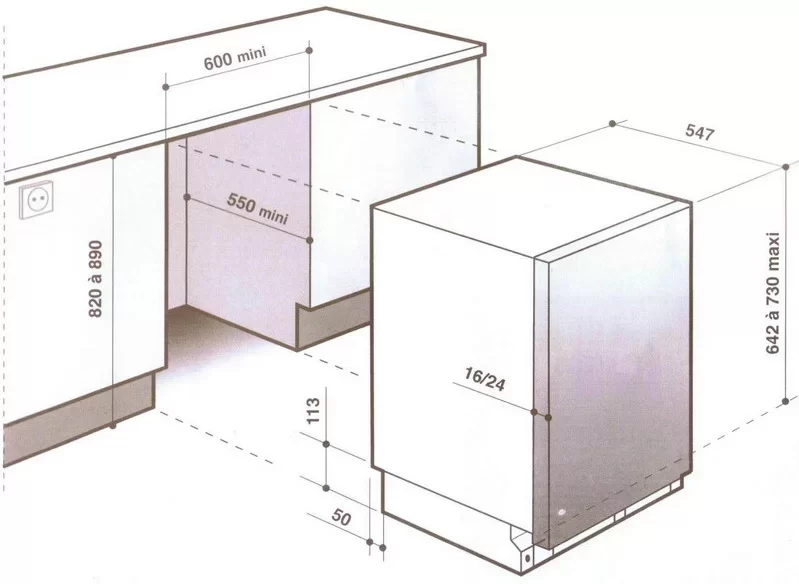 - • Размеры ниши для встраивания (ВxШxГ), см: 82-89 х 60 х 55