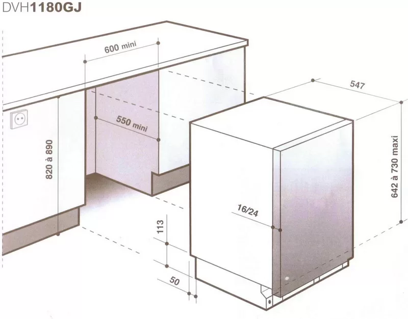 - • Размеры ниши для встраивания (ВxШxГ), см: 82-89 х 60 х 55