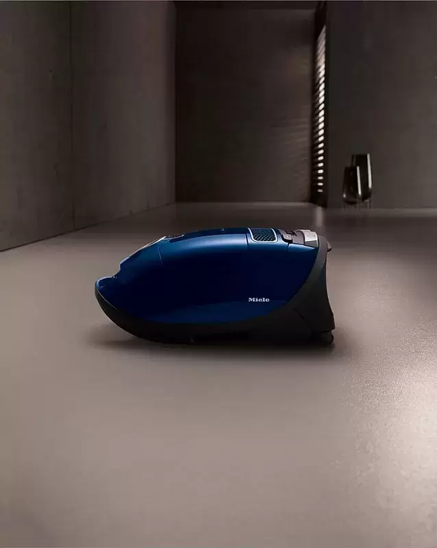 Пылесос Miele SGSF5 Complete C3 Parquet создан для сухой уборки и выполнен в классическом формате: базовый корпус на колёсиках, гибкий шланг с телескопической трубкой и комплект различных насадок. Благодаря мощному воздушному потоку он отлично справляется как с мелкой, так и с более крупной пылью, а также с волосами и шерстью. Цвет модели — насыщенный морской синий. Для сбора мусора используется мешок объёмом 4,5 литра — это удобно, так как он хорошо удерживает пыль внутри и не требует частой замены, хотя самые мелкие частицы могут частично пройти наружу.