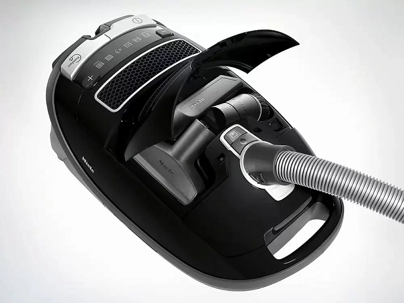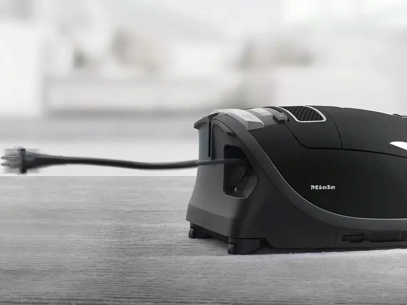 Пылесос Miele SGSF5 — это надёжный и мощный помощник для уборки дома. Он выполнен в строгом чёрном цвете и использует мешок для сбора пыли, который, к слову, заменяется без труда. Радиус действия у модели внушительный — 12 метров, так что перемещаться по комнате без постоянного поиска розеток куда удобнее. На корпусе находятся крупные кнопки — нажимать их можно ногой, не нагибаясь, что довольно практично. Есть индикатор, который подскажет, когда нужно сменить пылесборник.