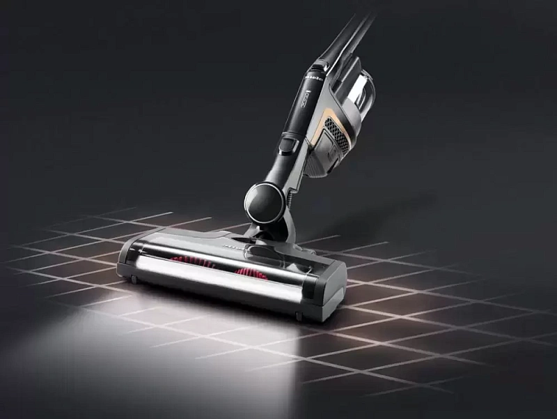 Беспроводной вертикальный пылесос Miele SMML0 Triflex HX1 Cat&Dog в элегантном чёрном цвете «обсидиан» спроектирован с учётом нужд владельцев домашних животных. Его ключевая особенность — это модульная конструкция: моторный блок PowerUnit можно передвигать по трубке, подстраивая прибор под конкретные задачи. Когда блок установлен внизу, пылесос удобно использовать для полов и поверхностей, расположенных горизонтально. Если же закрепить его сверху — проще очищать, например, шторы или стены. А если снять трубку совсем, прибор превращается в компактный ручной пылесос — подходит для быстрой уборки в машине.
