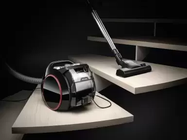 Пылесос Miele SNRF0 Boost CX1 в цвете «чёрный обсидиан» выполнен в традиционном формате: корпус на роликах, гибкий шланг, телескопическая трубка и сменные насадки в комплекте. Устройство предназначено исключительно для сухой уборки и эффективно справляется с мусором, пылью, шерстью и волосами — помогает в этом мощный воздушный поток. Вместо мешка для сбора пыли используется литровый контейнер. Его просто освободить от мусора: достал, вытряхнул, при желании промыл — всё быстро и без лишней возни. За чистоту воздуха отвечает фильтрационная система HEPA AirClean. Регулировка силы всасывания расположена прямо на корпусе, а за текущими настройками удобно следить на дисплее. Питается модель от электросети, так что подзарядка аккумулятора вам не понадобится вовсе. Для хранения предусмотрена функция парковки — прибор можно компактно поставить на бок. После использования шнур сворачивается автоматически. А телескопическая трубка регулируется по длине, что позволяет подобрать удобную высоту под себя.