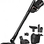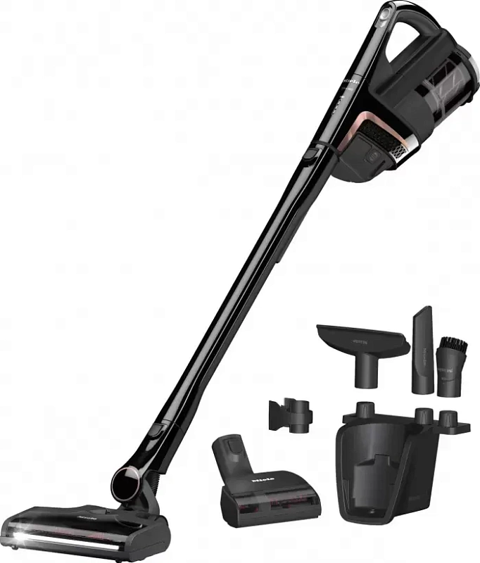 Работает пылесос от аккумулятора — одного полного заряда хватает примерно на 60 минут автономной работы, чего вполне достаточно для уборки площади около 125 м². Полностью зарядить аккумулятор можно за 4 часа. Удобная ручка Comfort и система лёгкой фиксации насадок делают использование особенно простым. В комплект входят электрощётка для глубокой чистки ковровых покрытий, щелевая насадка для доступа к узким местам, насадка для мебели, модель с подсветкой для неосвещённых участков и вариант с мягкой искусственной щетиной — для деликатной уборки. Дополнительные функции включают возможность подключения электрощетки с повышенной мощностью очистки, систему вертикальной парковки и настенное крепление для хранения устройства. Все насадки и аксессуары удобно размещаются в специальном отсеке.