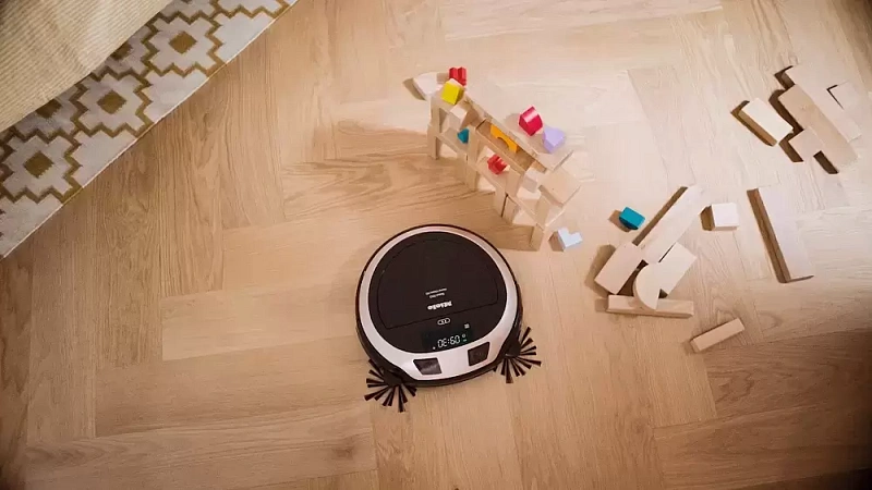 Отдельного внимания заслуживает фильтр AirClean Plus — он задерживает мелкую пыль и аллергены. Контейнер для мусора объёмом 0,4 литра позволяет сокращать частоту его очистки. Управление мощностью размещено прямо на корпусе пылесоса, рядом же — дисплей, который помогает следить за ходом уборки. Аппарат поддерживает несколько режимов: автоматический, точечный, ручной, турбо и тихий — можно выбрать оптимальный вариант под тип покрытия или уровень загрязнённости. Также есть функция ограничения зоны уборки с помощью магнитной ленты.