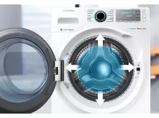 Широкий набор функций — один из главных плюсов этой модели. Даже при коротких циклах технология Pro Wash обеспечивает качественное увлажнение ткани. Бесщёточный инверторный двигатель делает машину тихой и экономичной в плане энергопотребления: при стирке уровень шума не превышает 50 дБ, а при отжиме — 77 дБ.