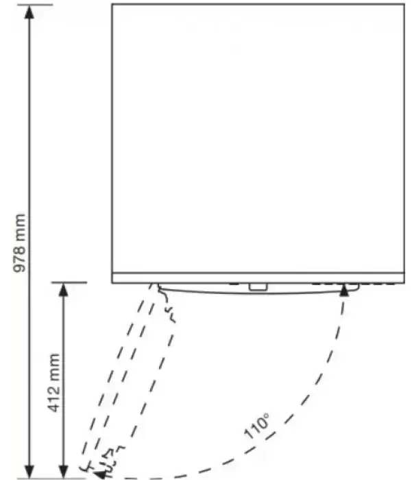 - • Глубина с открытой дверцей (см): 96.5
