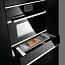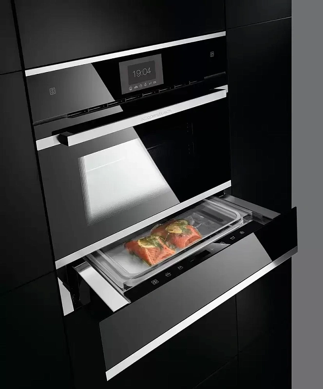 Встраиваемый вакууматор — практичное решение как для домашнего использования, так и для профессиональной кухни. Он помогает сохранять продукты свежими дольше, удобен при подготовке мяса или рыбы для приготовления по технологии Sous-Vide, а также ускоряет процесс маринования в соусах. При выборе стоит учитывать объём камеры: если он мал, можно столкнуться с перегрузкой устройства. Эта модель выполнена в сером цвете, что позволяет ей органично вписаться в интерьер любой кухни. Установить устройство можно рядом с духовым шкафом либо встроить в колонну вместе с другой техникой. Управление здесь электронное — выбрать нужный режим можно довольно быстро, при этом за всем процессом удобно наблюдать. Чтобы открыть камеру, достаточно слегка нажать на переднюю панель. Аппарат поддерживает классический способ вакуумирования: из пакета удаляется воздух, уровень которого регулируется, затем пакет герметизируется. Подчеркнём: использование специального контейнера даёт возможность обрабатывать большие куски продуктов или готовить множество порций за раз. Адаптер для внешнего вакуумирования позволяет подключать нестандартные ёмкости и увеличивать общий объём загрузки без учёта размеров встроенной камеры. В комплекте уже есть 50 упаковочных пакетов — этого запаса хватит надолго, и не придётся сразу искать замену. Крышка камеры открывается плавно и надёжно фиксируется благодаря телескопическим направляющим, что делает пользование прибором проще и безопаснее. Также в комплект входят переходник для внешнего вакуумирования и адаптер для закупорки бутылок с жидкими продуктами.