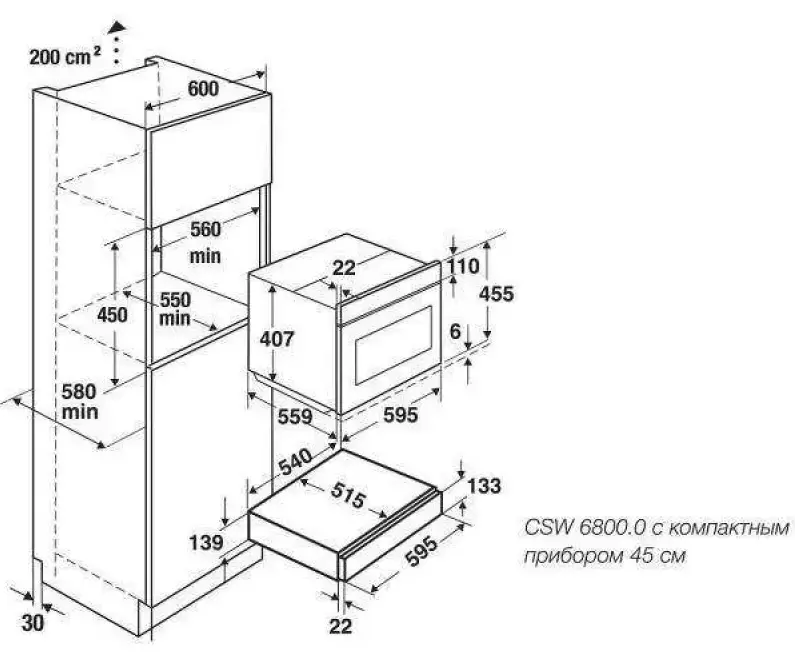 - Идеально для совместной установки с приборами высотой 45 см в нишу высотой 59 см, в особенности с прибором CBD 6550.0