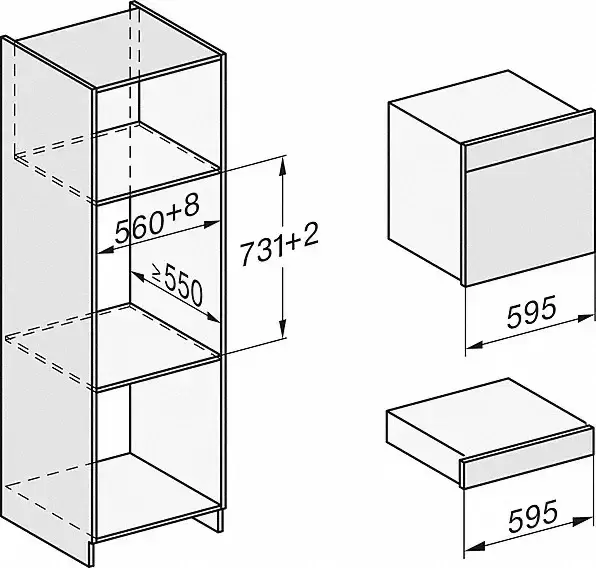 - • Размеры ниши для встраивания (ВxШxГ), см: 14-14.2х56-56.8х55