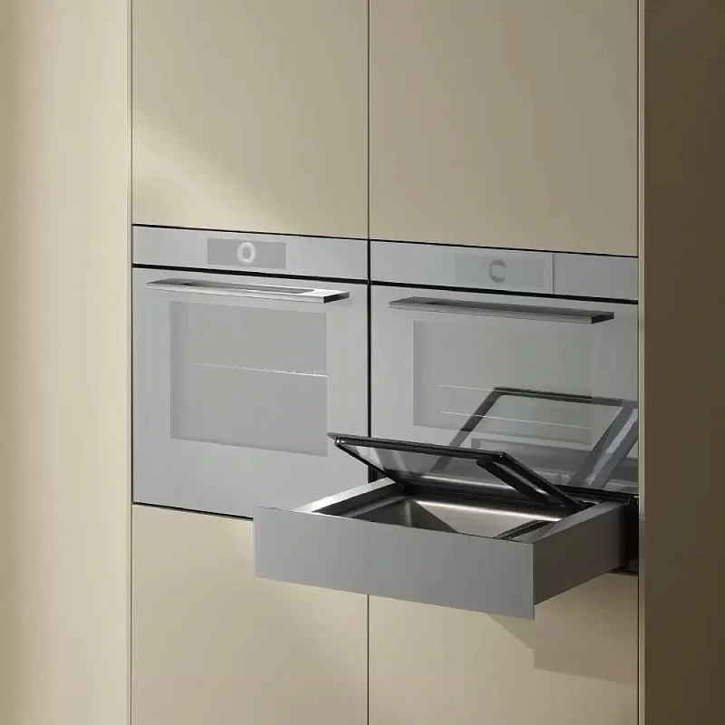 Встраиваемые вакууматоры всё чаще появляются не только в профессиональных кухнях, но и в домашних. Они отлично справляются с задачей продления свежести продуктов, подготовкой мяса и рыбы для Sous-Vide и ускоренным маринованием в любых соусах. При выборе важно обратить внимание на габариты камеры — это влияет как на удобство использования, так и на срок службы устройства. Конкретно эта модель выполнена в цвете «платина», благодаря чему хорошо вписывается в различные интерьерные стили — что, согласитесь, приятно. Вакууматор можно удобно встроить рядом с духовым шкафом или установить в колонну вместе с другой техникой.