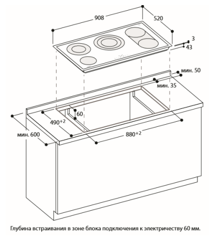 - Для встраивания на одном уровне со столешницей