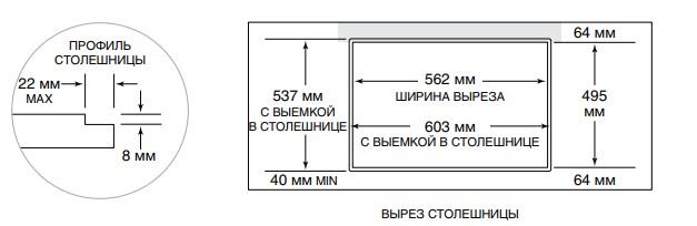 - • Размеры ниши для встраивания (Ш х Г), см: 56.2x49.5