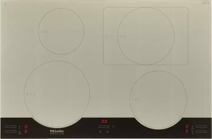Индукционная варочная панель Miele KM 5956 (Fire) по своим функциям и техническим параметрам во многом совпадает с моделью Miele KM 5955 (Ice), однако отличается цветовым решением — стеклокерамическая поверхность выполнена в титановом оттенке. Особенностью панели является дополнительная прямоугольная зона нагрева размером 200 × 300 мм, которая делает приготовление более гибким. Все конфорки поддерживают режимы быстрого нагрева Booster и TwinBooster, благодаря чему можно существенно сократить время готовки. В числе полезных опций — возможность индивидуальной настройки каждой конфорки, подключение к системе MieleHome для синхронизации с другими приборами бренда, а также функция Stop & Go, позволяющая приостанавливать процесс готовки на короткое время. Важно: как и большинство встраиваемой электротехники, данная модель поставляется без сетевой вилки.