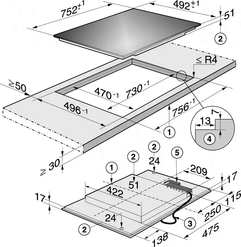 - • Конфорок индукционных: 4