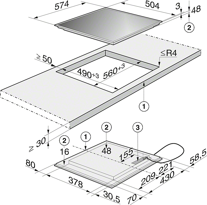 - • Размеры ниши для встраивания (Ш х Г), см: 56х49
