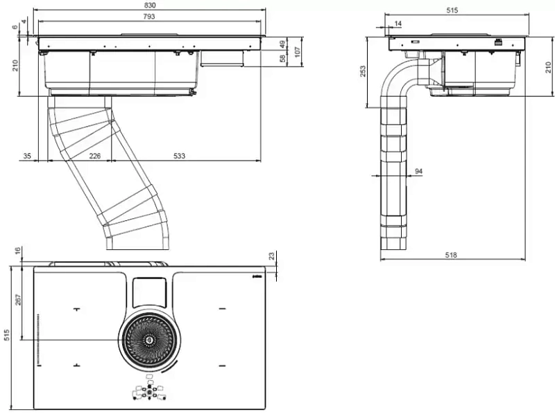 Четыре варочные зоны позволяют готовить сразу несколько блюд, при этом мощность каждой можно точно регулировать. Если вы используете большую кастрюлю или нестандартную посуду, объединение конфорок окажется особенно полезным. Функция распознавания посуды включает зону нагрева только тогда, когда на ней что-то стоит. При необходимости устройство может поддерживать уже готовую еду теплой — примерно при 60°C, так что разогревать её перед подачей на стол не придётся. А встроенная вытяжка с жироуловителем из алюминия работает на отвод воздуха. В случае выбора режима рециркуляции можно отдельно приобрести керамический угольный фильтр.