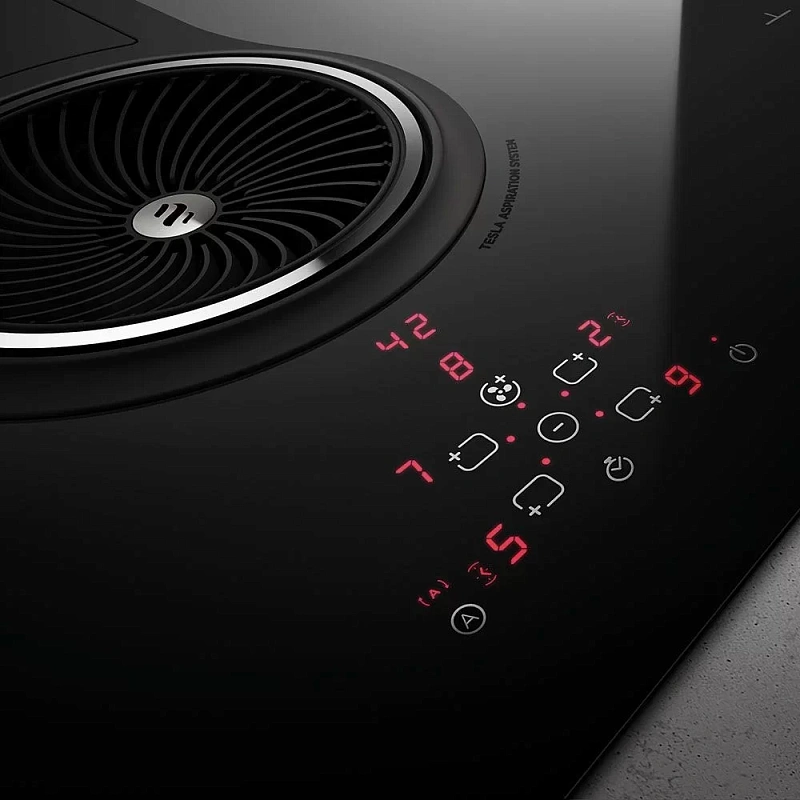 Индукционная варочная панель Elica, созданная по дизайну FABRIZIO CRISÀ, представляет собой настоящее дизайнерское решение, которое было удостоено ряда наград в 2018 году. Её черная стеклянная поверхность выглядит стильно и гармонично впишется в интерьер современной кухни. Устройство монтируется заподлицо со столешницей в любом удобном месте — неважно, есть рядом духовой шкаф или нет. Панель управления расположена на передней части устройства и работает с помощью сенсорных клавиш.